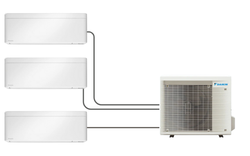 Aparat de aer conditionat multisplit Daikin cu doua unitati interne Stylish 7000 si una de 12000 BTU White